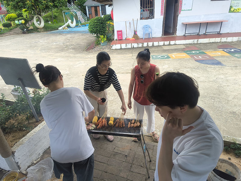 Après le déjeuner, place aux jeux et à la détente. Nous nous sommes divisés en groupes et avons joué à des jeux de cartes amusants. Une collègue ne savait pas jouer, alors tout le monde lui a patiemment appris en riant amicalement. Certains sont allés pêcher dans l'étang, tandis que d'autres observaient les poules. Nous sommes même allés chanter au bar karaoké de la ferme. Aucun n'était chanteur professionnel, mais cela ne nous a pas empêchés d'entonner des chansons pop, des classiques et même quelques airs rigolos. Voir des collègues, habituellement concentrés sur des feuilles de calcul ou des appels clients, se déchaîner et danser était un vrai plaisir ; pendant quelques heures, nous n'étions plus de simples collègues, mais des amis partageant un bon moment.