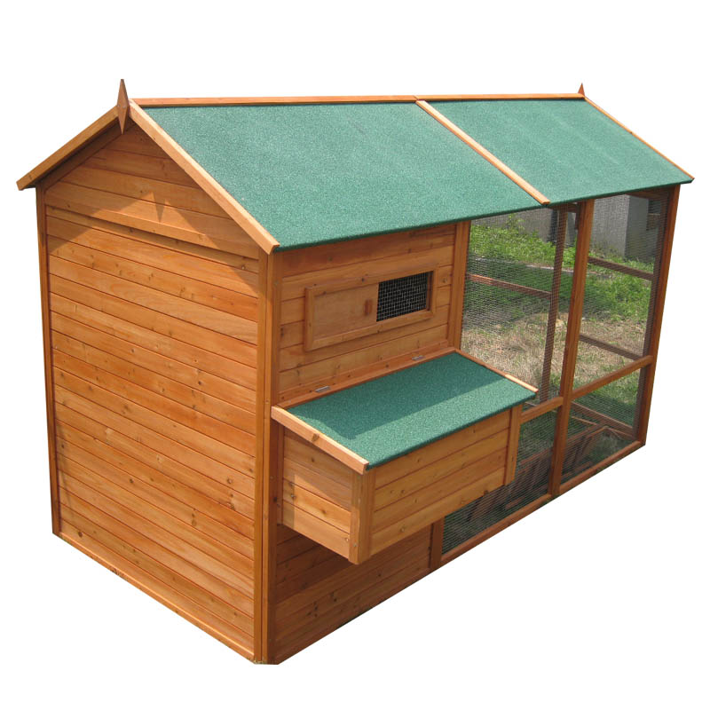 Pour une utilisation durable, il associe un toit imperméable à du sapin massif de haute qualité, robuste et imperméable, recouvert d'une peinture écologique pour une meilleure résistance au soleil, à l'humidité et à la corrosion. Pour une protection supplémentaire contre les dégâts causés par la pluie, le toit incliné en asphalte évacue efficacement les eaux de pluie, empêchant ainsi les infiltrations qui pourraient endommager la structure du poulailler.