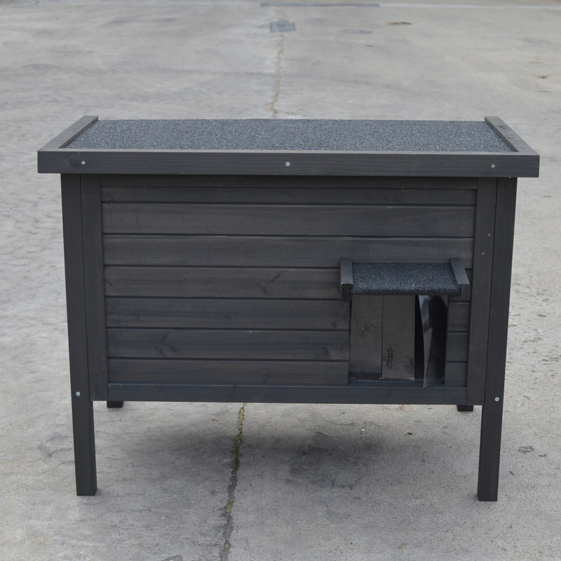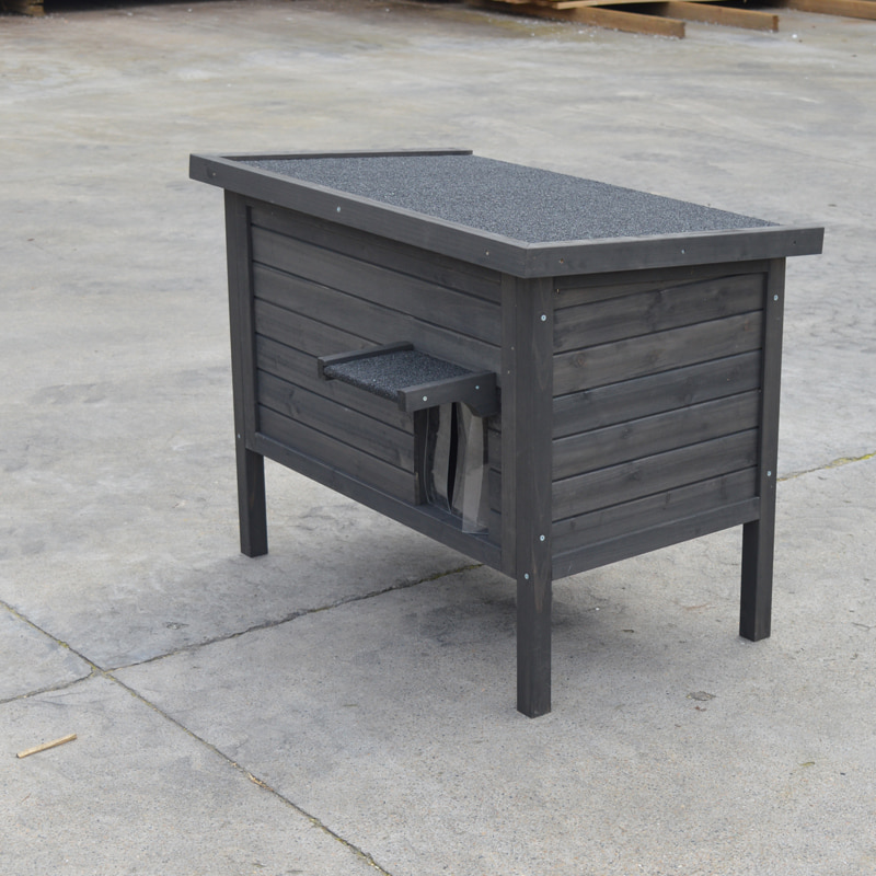Wooden Cat HouseNiche surélevée robuste en bois foncé pour chat avec toit résistant aux intempéries